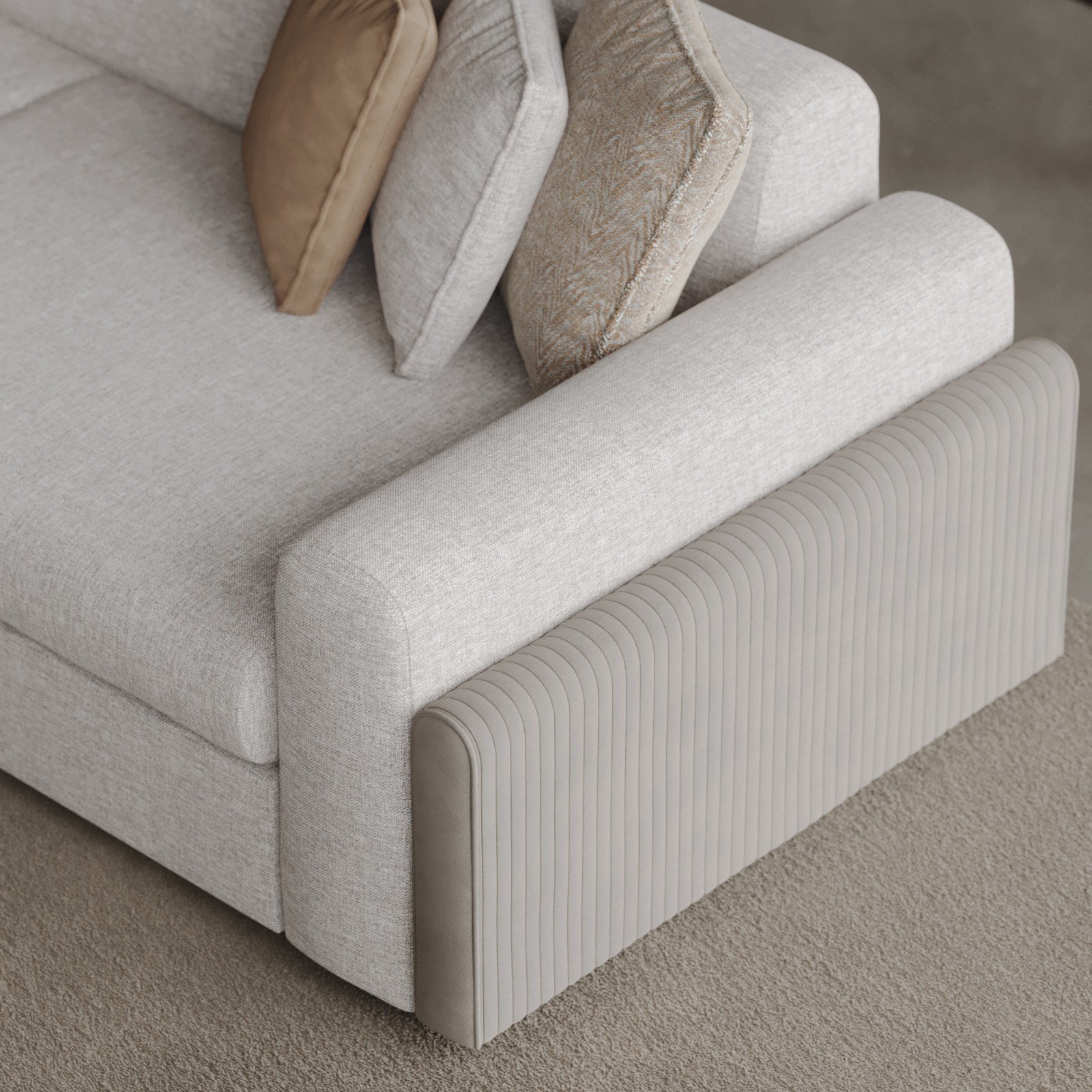 The Venus Sofa Set features a durable beech wood frame and premium linen fabric, offering an elegant look. Its stylish design blends comfort with aesthetics, bringing a modern touch to your living space.